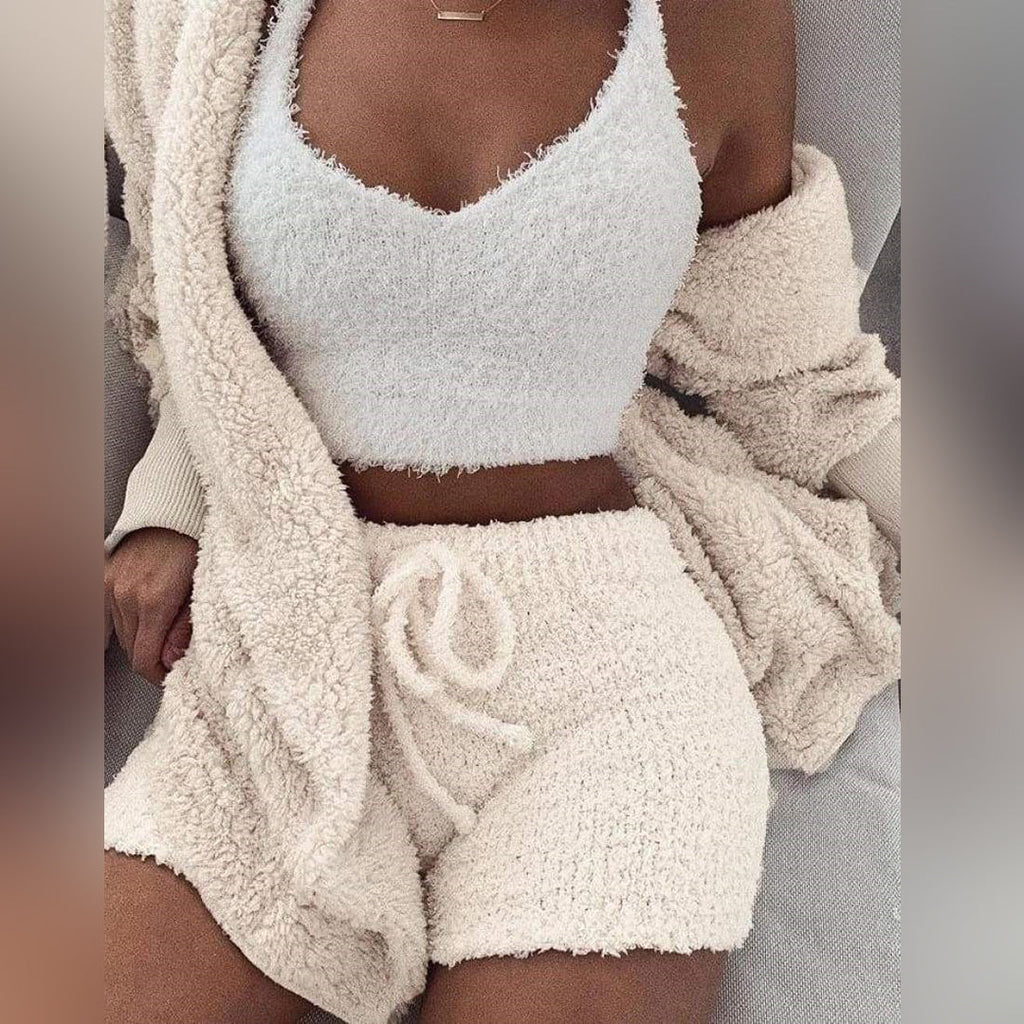 Dieses gemütliche 3-teilige Set ist ideal für alle, die in der kalten Jahreszeit stilvoll warm bleiben möchten. Es bietet die perfekte Kombination aus Funktionalität und modischem Design. Egal, ob du relaxen oder unterwegs bist, dieses Outfit sorgt dafür, dass du dich immer wohlfühlst.