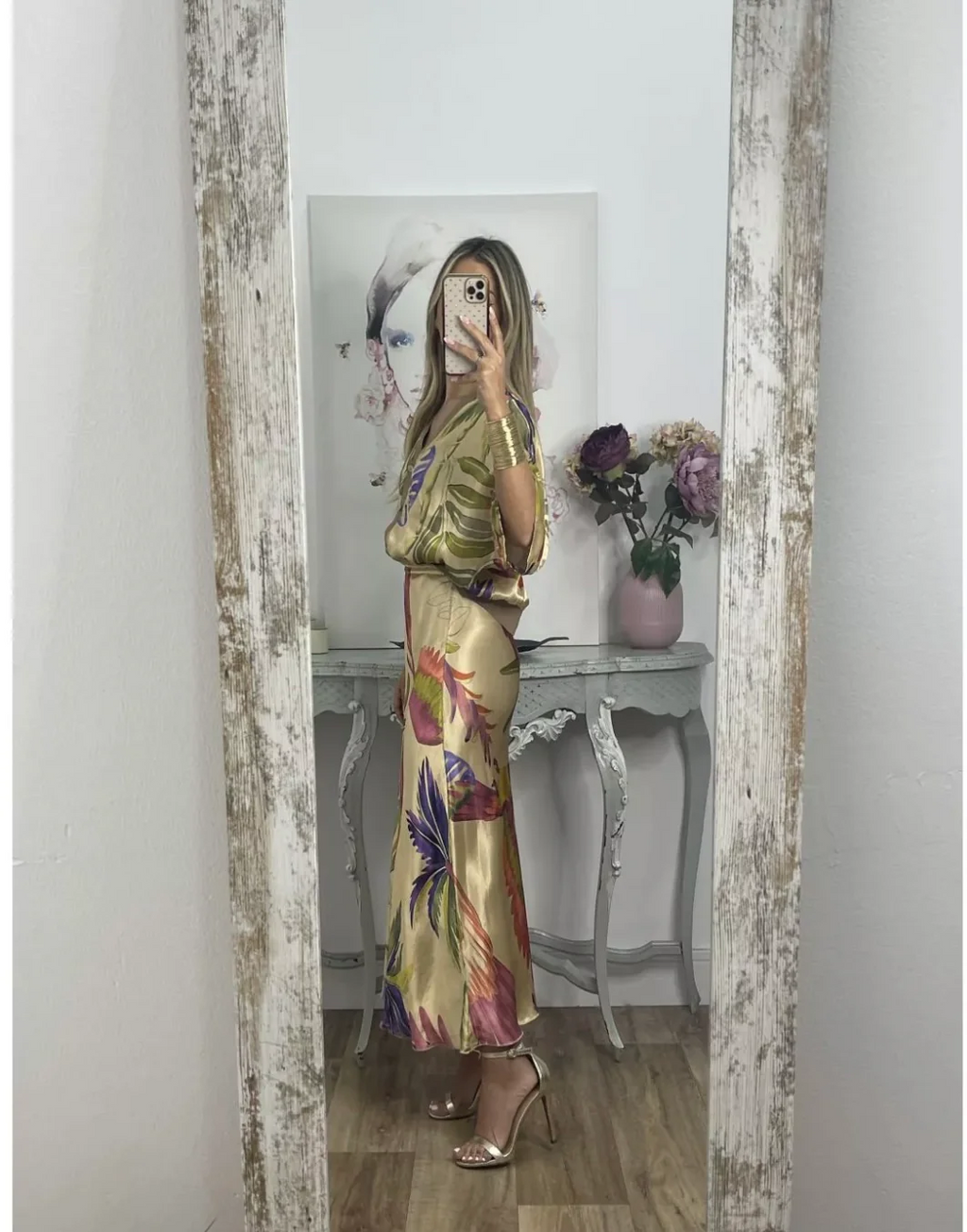 Mit diesem Set aus Seidenkleidern hast du eine stilvolle und vielseitige Ergänzung für deine Garderobe, die sowohl elegant als auch komfortabel ist. Lass dich von der Leichtigkeit und dem Luxus der Seide begeistern!