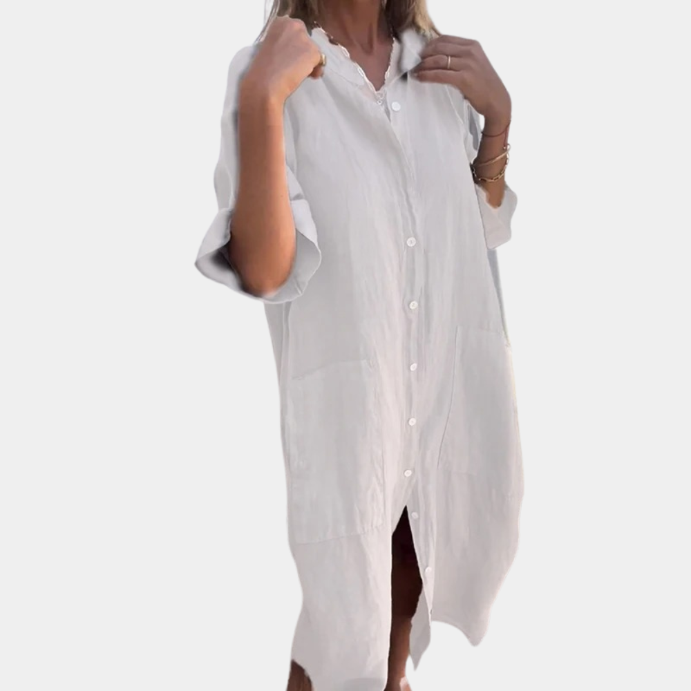 Dieses Kleid ist ideal für Frauen, die einen lässigen, aber dennoch stilvollen Look schätzen. Es kombiniert Funktionalität mit einem modernen Design und eignet sich für verschiedene Anlässe, sei es im Büro oder in der Freizeit. Die praktischen Taschen sind ein zusätzlicher Pluspunkt, der es zu einem unverzichtbaren Teil Ihrer Garderobe macht.