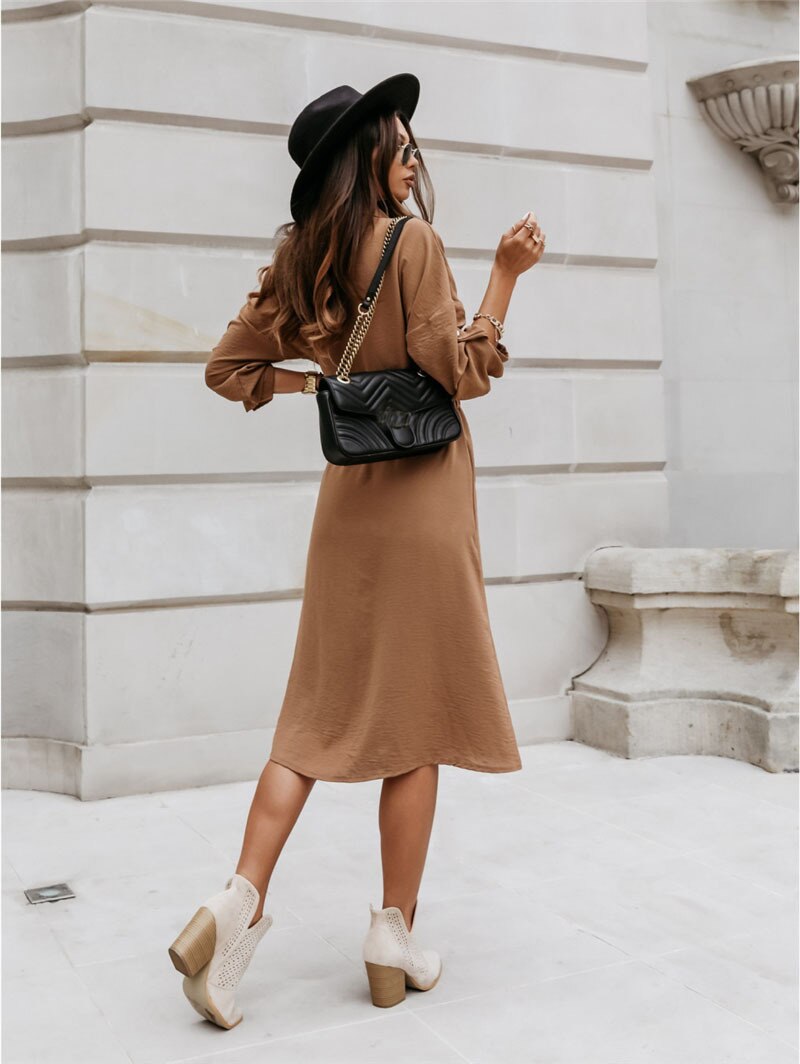 Dieses Kleid ist die ideale Wahl für modebewusste Frauen, die ein Outfit suchen, das sowohl für das Büro als auch für entspannte Treffen mit Freunden geeignet ist. Mit einem modernen Design und einer bequemen Passform wird es schnell zu einem unverzichtbaren Bestandteil Ihrer Garderobe.