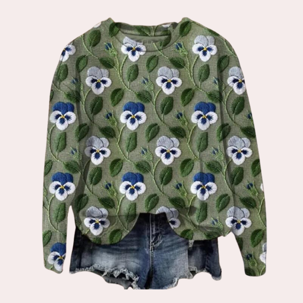 Dieser stilvolle Damenpullover mit Blumenstickerei vereint