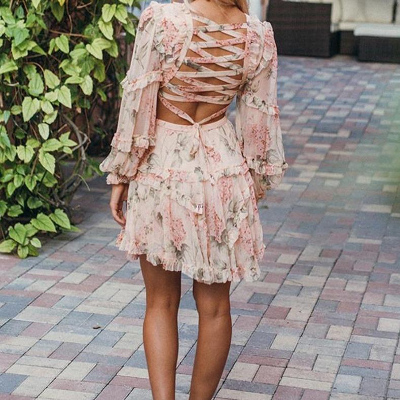 Dieses zauberhafte Kleid ist die perfekte Wahl für alle, die einen mädchenhaften Charme lieben. Es eignet sich hervorragend für besondere Anlässe oder entspannte Tage und besticht durch seinen eleganten Ausschnitt an der Taille für dich, der die feminine Silhouette gekonnt betont.