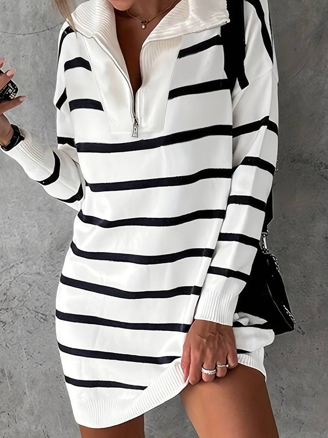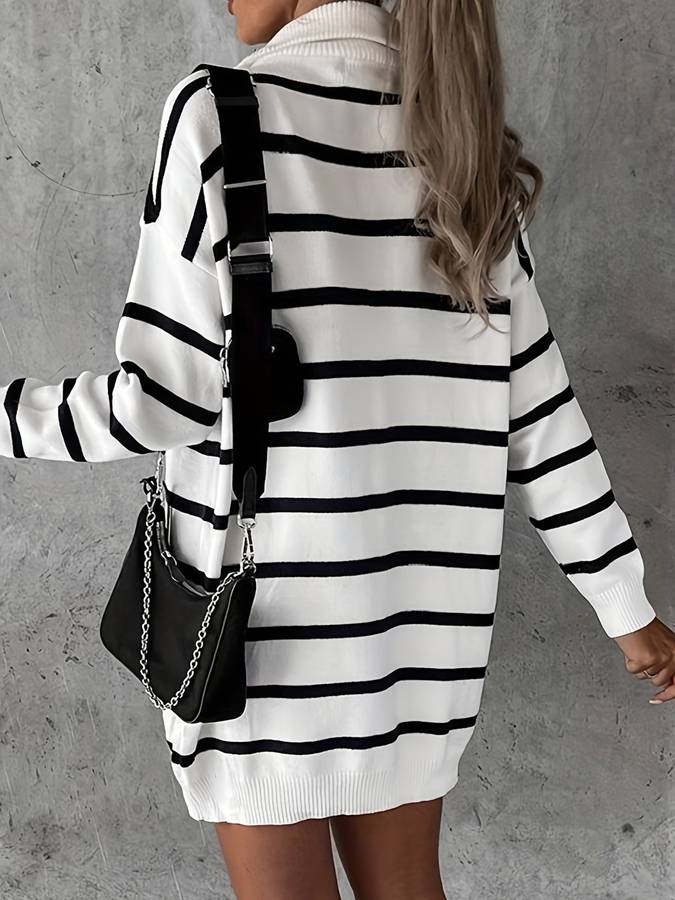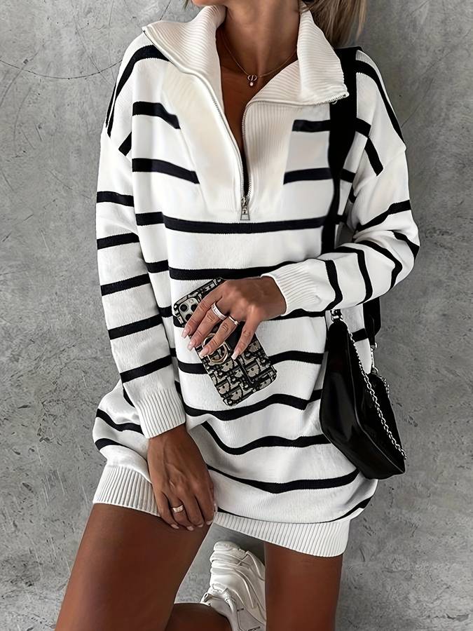 Dieses luftige Kleid ist die ideale Wahl für deinen Sommer. Es vereint Stil und Funktionalität und bietet ein angenehmes Tragegefühl an heißen Tagen. Mit seinem modernen Streifendesign und praktischen Details ist es perfekt für jede Gelegenheit. Dieses Kleid ist eine tolle Ergänzung für deine Garderobe!