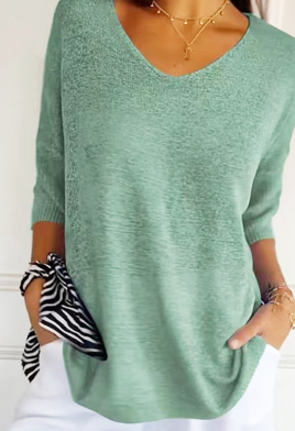 Elna - Unifarbenes Stricktop mit V-Ausschnitt