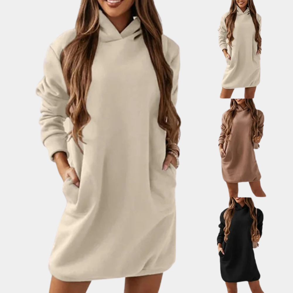 Dieses praktische Kleid bietet nicht nur einen hohen Tragekomfort, sondern ist auch ideal für verschiedene Anlässe. Mit einer Kapuze und einem lässigen Design ist es der perfekte Begleiter für den Alltag sowie für entspannte Freizeitaktivitäten.