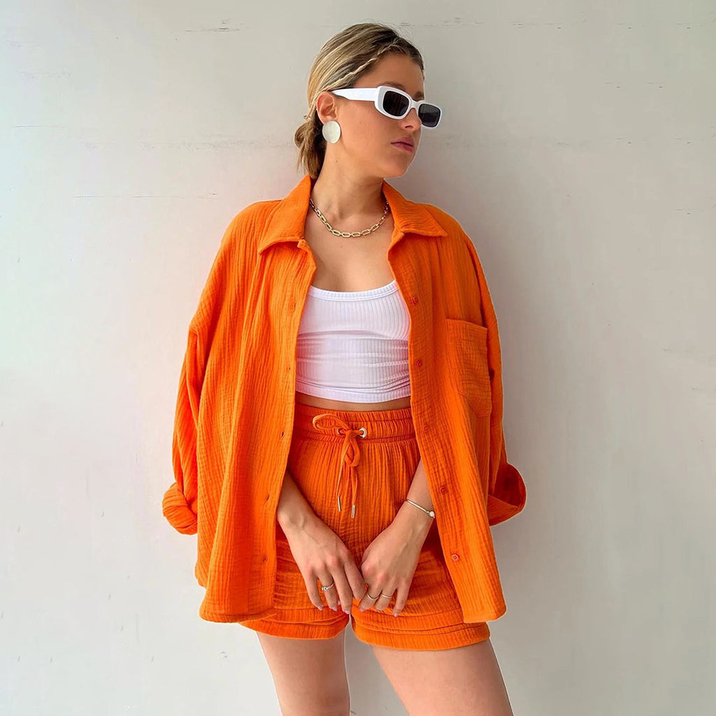 Dieses Sommer-Outfit besteht aus einem luftigen Oberteil und bequemen Shorts, die ideal für all Ihre Sommeraktivitäten sind. Egal, ob Sie am Strand entspannen oder sich mit Freunden treffen, dieses Set bietet den Komfort, den Sie brauchen, und gleichzeitig einen modischen Look, der Ihnen gefällt.