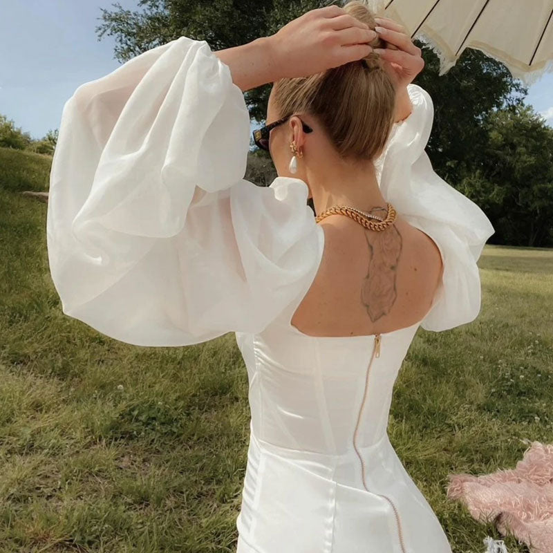 Verspielte Puffärmel: Sie verleihen dem Kleid einen dramatischen und modernen Look.