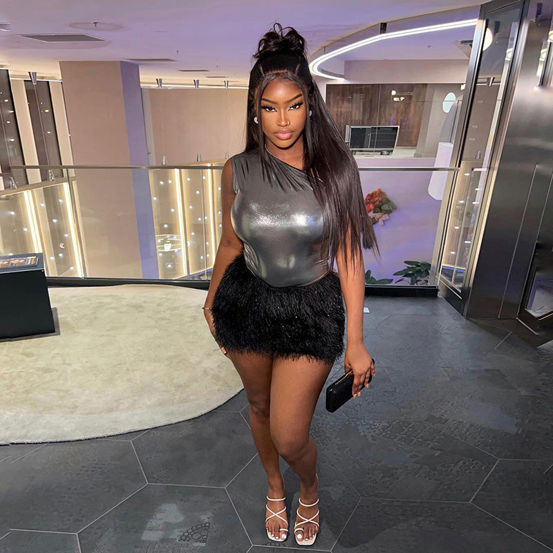 Dieses Kleid ist das perfekte Outfit für Damen, die Stil und Eleganz suchen. Es kombiniert einen modernen Minirock mit einem stilvollen Oberteil und eignet sich ideal für Partys, besondere Veranstaltungen oder ein Abendessen. Dieses Outfit bringt die Weiblichkeit zur Geltung und sorgt für einen unvergesslichen Auftritt.