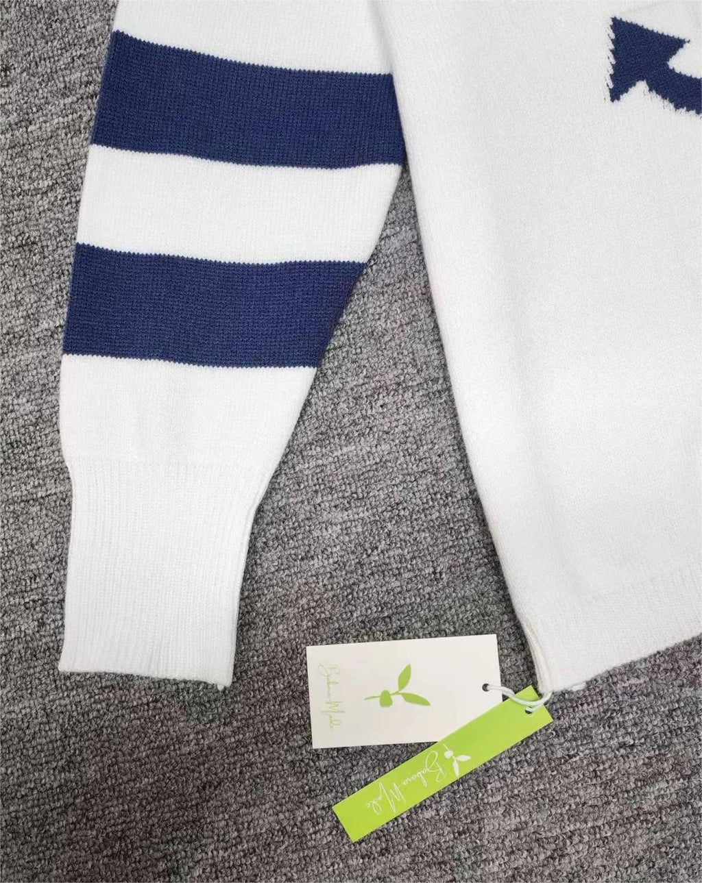 Um die Lebensdauer des Pullovers zu verlängern, waschen Sie ihn bei niedriger Temperatur und vermeiden Sie Bleichmittel. Lassen Sie ihn an der Luft trocknen, um die Form und Qualität zu erhalten.