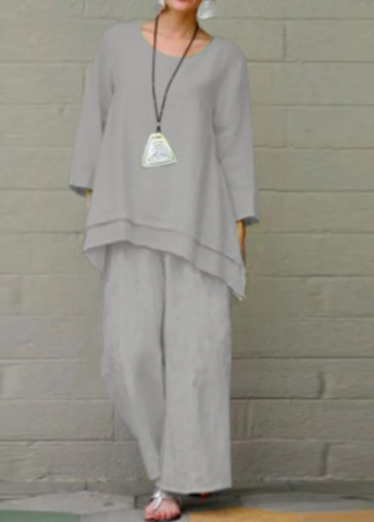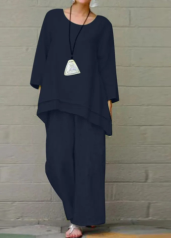 Dieses zweiteilige Set aus hochwertigem Baumwollleinen ist die ideale Wahl für modebewusste Frauen, die sowohl Stil als auch Tragekomfort schätzen. Es ist perfekt für verschiedene Anlässe, egal ob im Alltag oder bei besonderen Ereignissen. Das Set sorgt dafür, dass Sie sich den ganzen Tag über wohlfühlen und gleichzeitig gut aussehen.