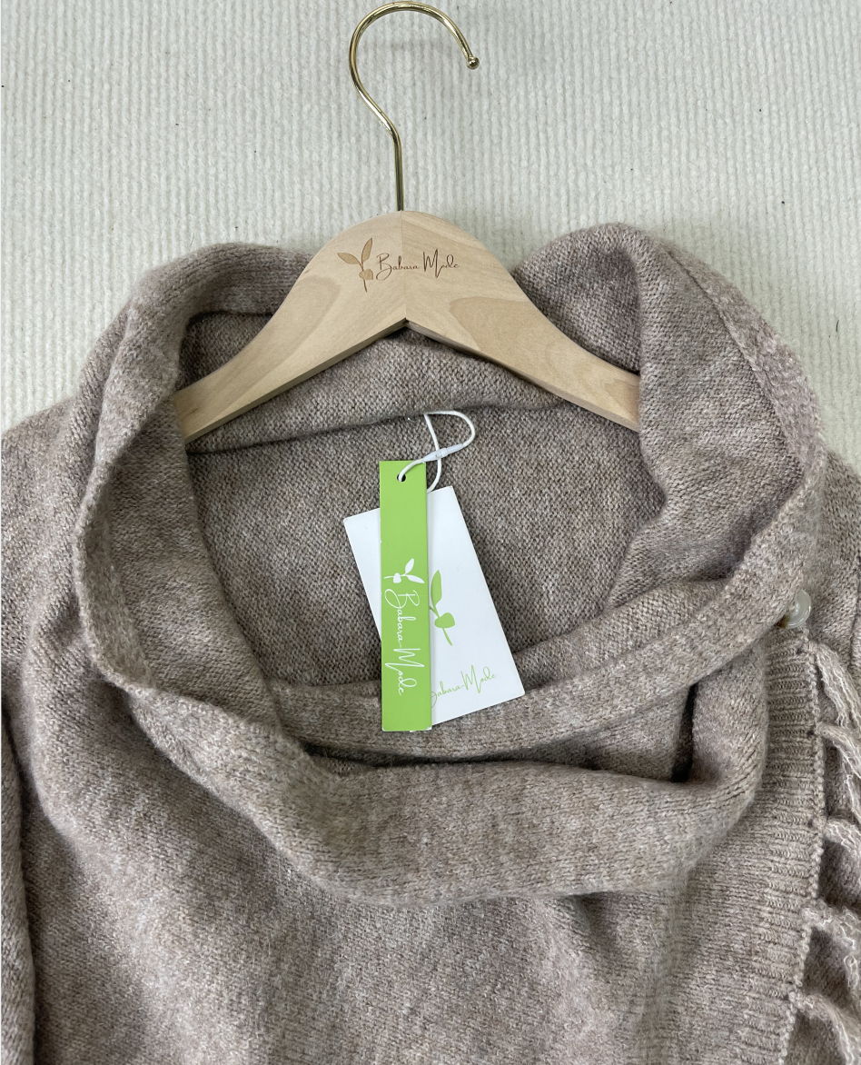 Um die Langlebigkeit des Pullovers zu gewährleisten, waschen Sie ihn bei 30 Grad in der Maschine und lassen Sie ihn an der Luft trocknen. Vermeiden Sie direkte Sonneneinstrahlung, um die Materialien zu schonen.