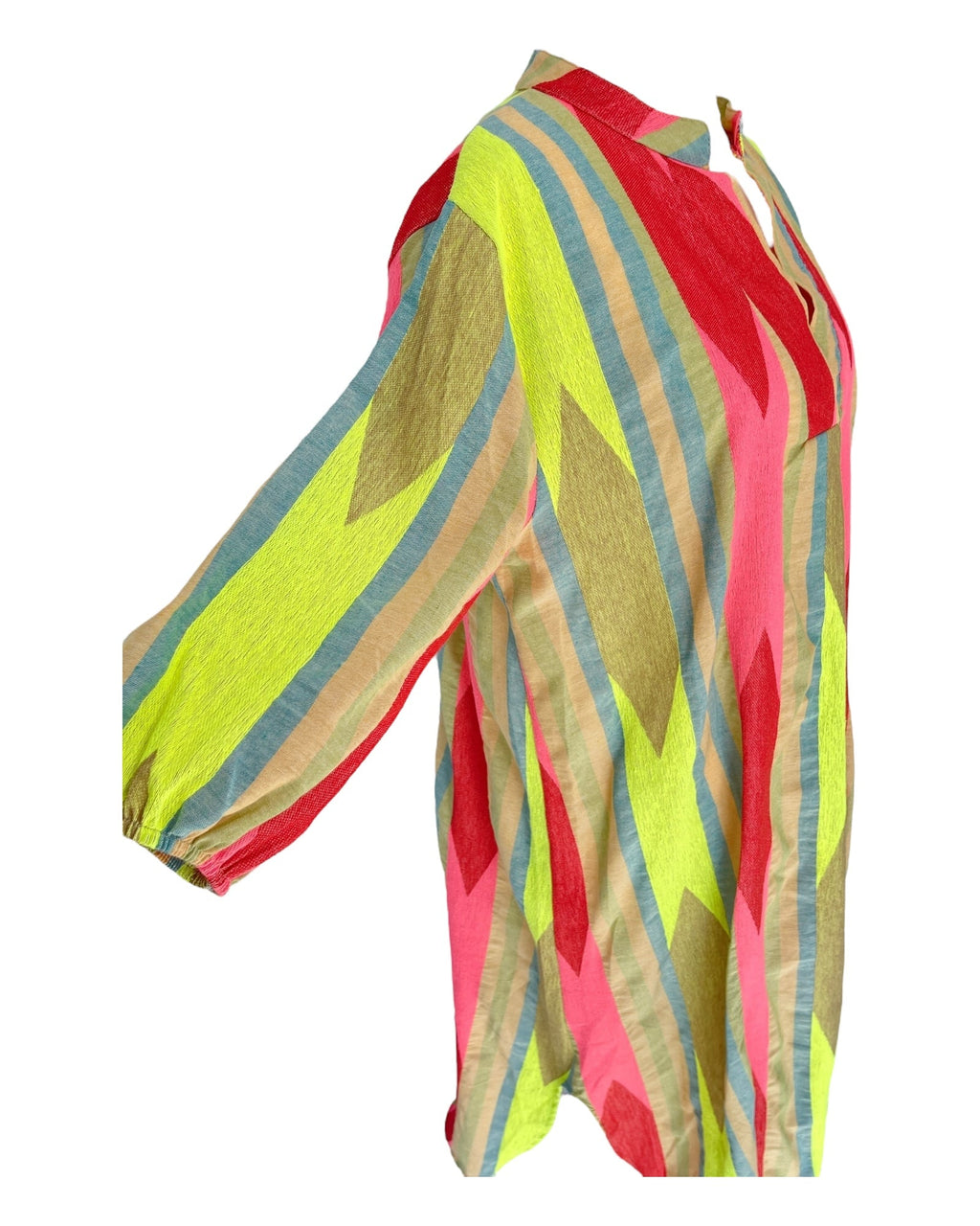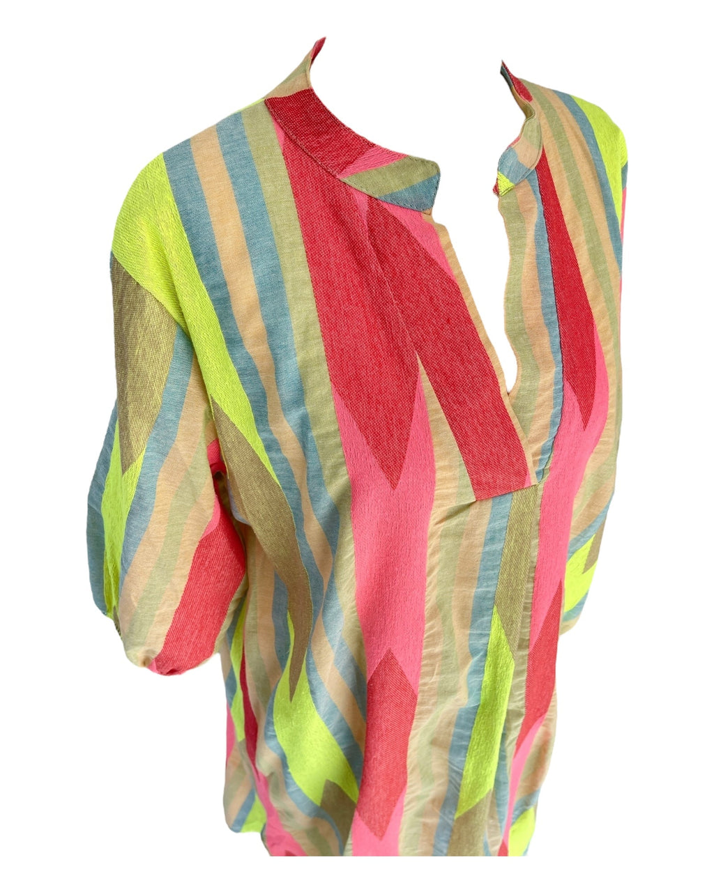 Um die Qualität und die Farben des Stoffes zu erhalten, solltest du das Kleidungsstück bei niedriger Temperatur waschen. Vermeide Bleiche und trockne es an der Luft, um die Langlebigkeit zu gewährleisten.