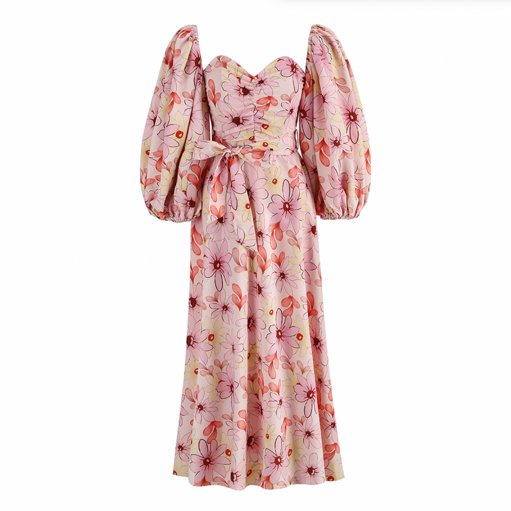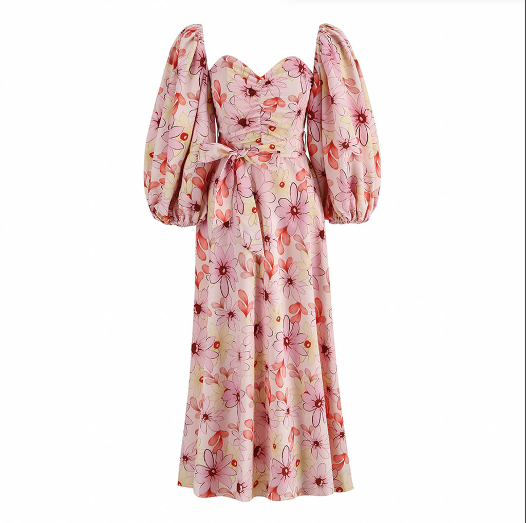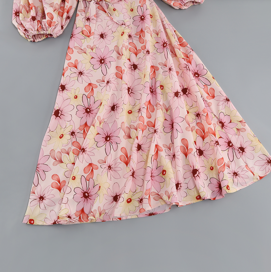 Dieses Kleid mit einem bezaubernden Blumenmuster ist ideal für modebewusste Frauen, die Stil und Komfort schätzen. Die langen Ärmel und der herzförmige Ausschnitt verleihen diesem Kleid einen romantischen Touch, sodass du sowohl bei besonderen Anlässen als auch im Alltag immer gut aussiehst.