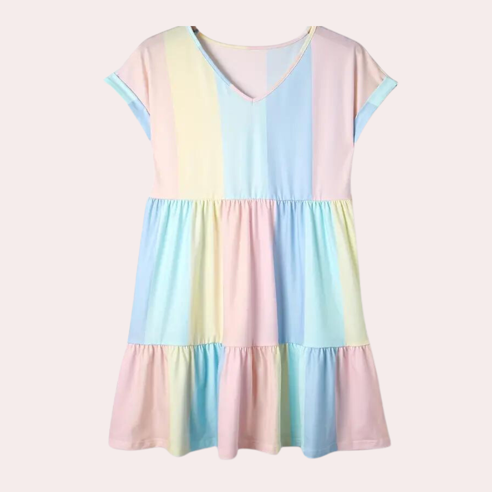 Dieses Kleid ist ideal für Frauen, die einen lässigen und dennoch stilvollen Look suchen. Es bietet eine harmonische Mischung aus Komfort und modischem Design, perfekt für verschiedene Anlässe, sei es ein entspannter Tag im Park oder ein Treffen mit Freunden.