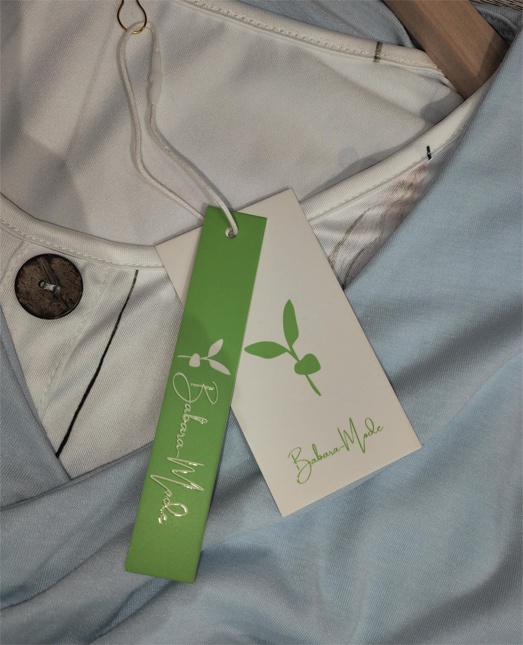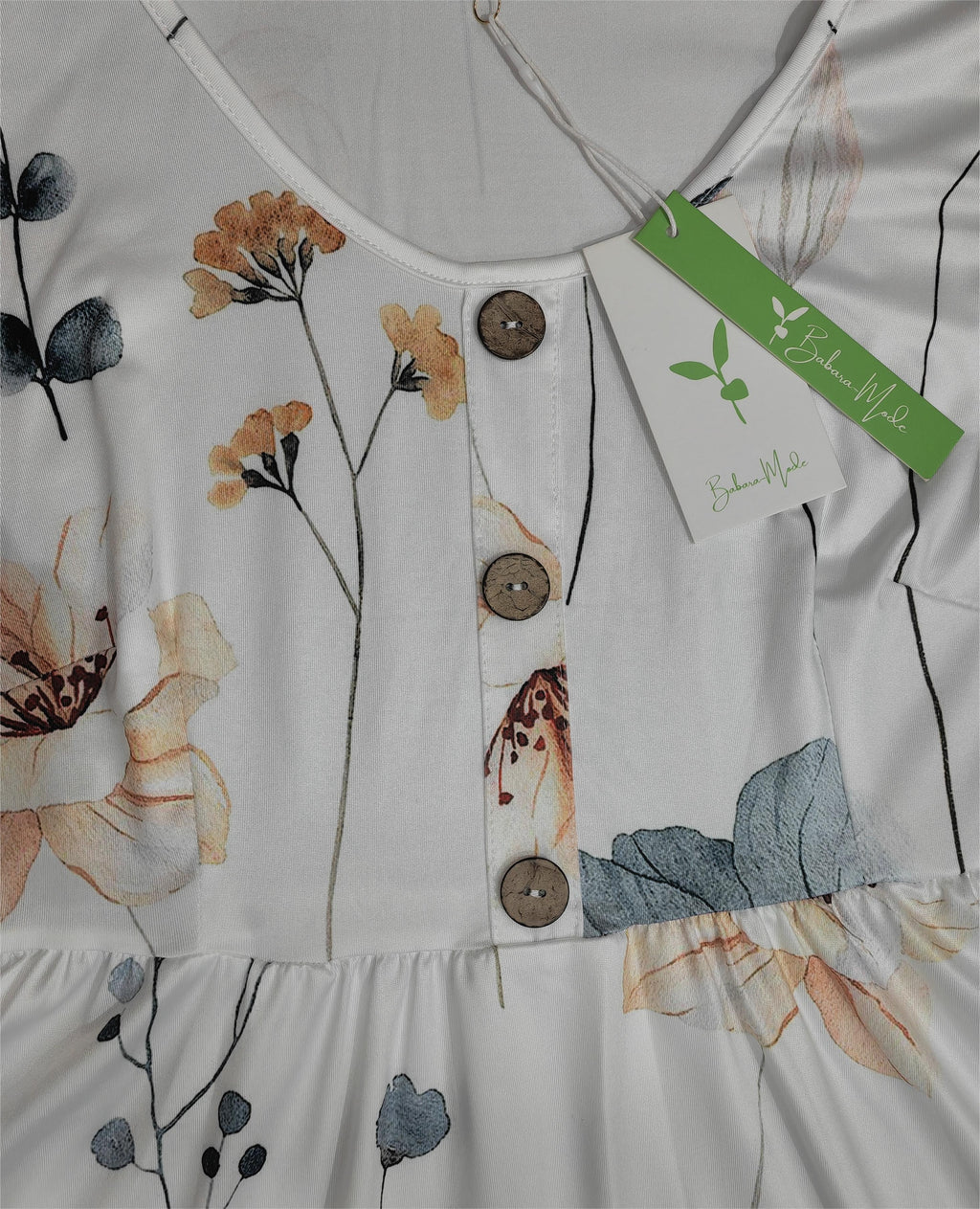 Um die Langlebigkeit des Kleides zu gewährleisten, waschen Sie es bei niedrigen Temperaturen und vermeiden Sie aggressive Reinigungsmittel. Lassen Sie es an der Luft trocknen, um die Form und die Farben zu erhalten.