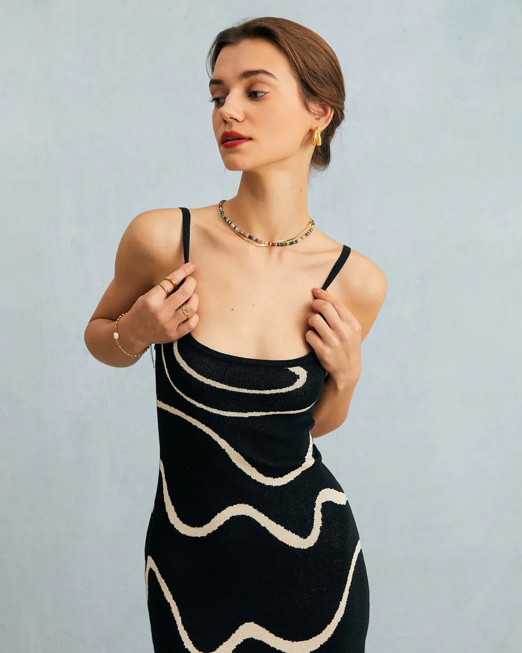 Um die Langlebigkeit des Kleides zu gewährleisten, waschen Sie es bei niedrigen Temperaturen und vermeiden Sie Bleichmittel. Lassen Sie es an der Luft trocknen, um die Form zu erhalten.