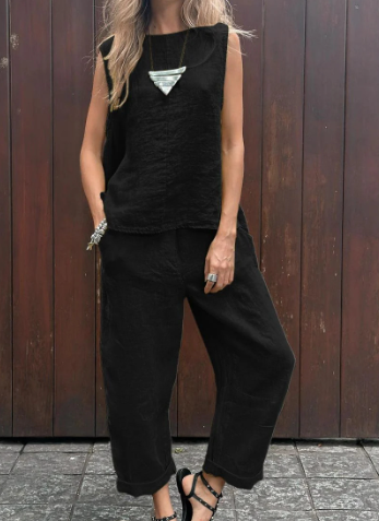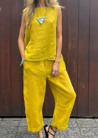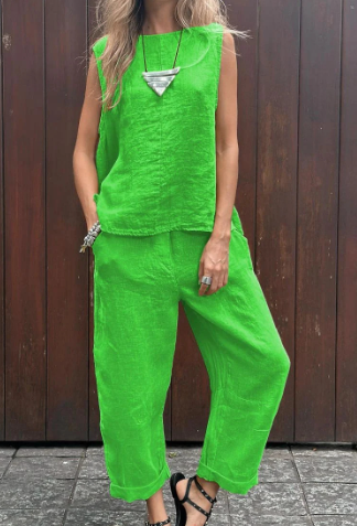 Dieses vielseitige Set aus einem Top und einer Hose ist die ideale Wahl für Frauen, die sowohl modisch als auch bequem gekleidet sein möchten. Das hochwertige Material aus und Baumwolle sorgt dafür, dass Sie sich an warmen Tagen wohlfühlen, während der moderne Schnitt Ihre Figur schmeichelt. Ob für den Alltag oder besondere Anlässe, dieses Set hebt Ihren Look auf ein neues Level.