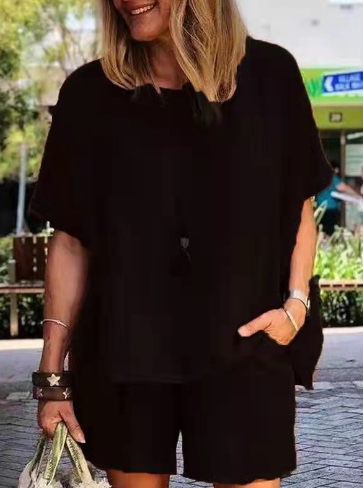 Kombinieren Sie dieses Set mit Sneakers für einen lässigen Look oder tragen Sie Sandalen für einen eleganteren Auftritt. Verleihen Sie Ihrem Outfit den letzten Schliff mit einer passenden Tasche und etwas Schmuck.