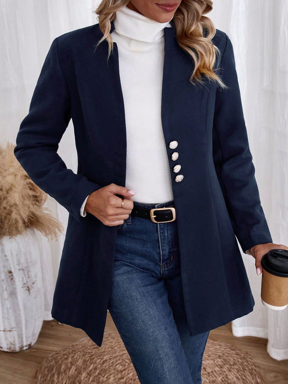 Kombinieren Sie diese Oberbekleidung mit einer schlichten Bluse und Jeans für einen lässigen Look. Für formelle Anlässe können Sie sie über einem eleganten Kleid tragen oder mit einer schmalen Hose und schicken Schuhen kombinieren.