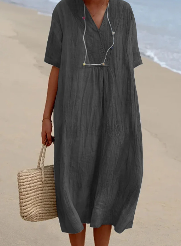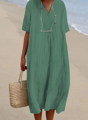 Dieses Kleid hebt sich durch seine Verbindung von Komfort und Stil ab. Es ist eine ausgezeichnete Wahl für jede Dame, die elegante und praktische Mode sucht.