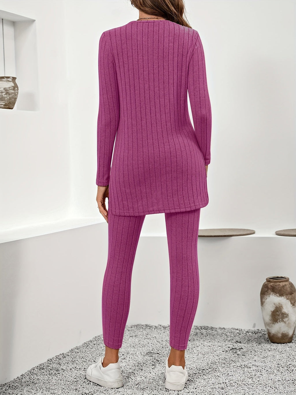 Dieses Set zeichnet sich durch seine Vielseitigkeit und Komfort aus, was es zu einem unverzichtbaren Bestandteil Ihrer Garderobe macht. Seine durchdachte Gestaltung sorgt dafür, dass Sie stilvoll und bequem zugleich sind!
