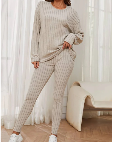 Dieses zweiteilige Set ist die ideale Wahl für Frauen, die Alltagstauglichkeit und Stil in einem Outfit suchen. Es besteht aus einem weichen Stoff, der sowohl für entspannte Tage zu Hause als auch für lässige Ausflüge geeignet ist. Mit diesem Set fühlen Sie sich immer wohl und schick! Dieses Set kombiniert Eleganz und Funktionalität auf perfekte Weise.