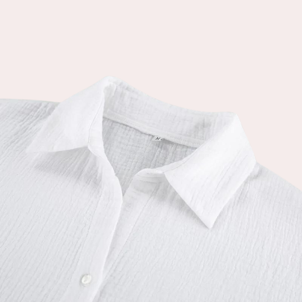 Die Kombination aus einem lässigen Hemd und bequemen Hosen sorgt für eine harmonische Silhouette und viel Bewegungsfreiheit.